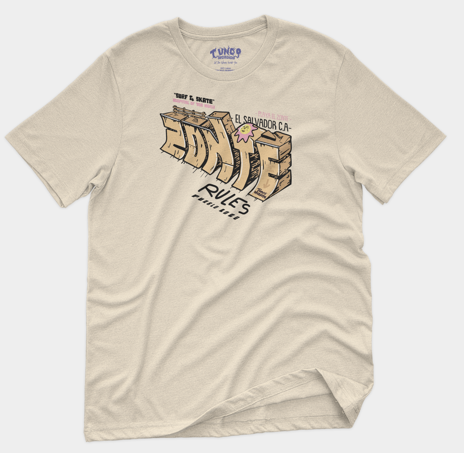 El Zonte o culturalmente conocido como Pueblo loco la tierra de las olas mas rápidas y el buen skate . Si necesitas un día para chillear El Zonte es el lugar indicado , Llévate la chemi del zonte y vivi tus días al máximo como la primera vez que lo visitaste .